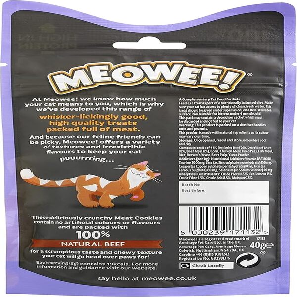 Choose Armitage Meowee! Meat Cookies Beef 40g to delight your cat with a treat that’s both flavourful and nourishing. They’re a simple way to show love while supporting your pet’s wellbeing.