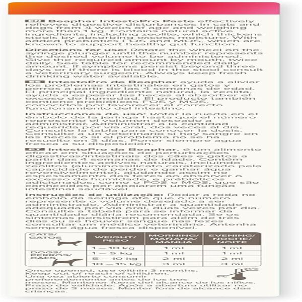 Beaphar IntestoPro Anti-Diarrhoea Paste for Small Dogs & Cats – 20ml offers fast, effective relief from mild and non-specific digestive upsets. Specially formulated for pets with sensitive stomachs, this oral paste helps control acute diarrhoea and supports digestive recovery.