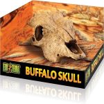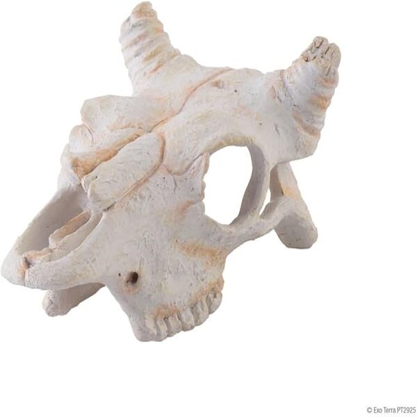 Exo Terra Buffalo Skull – One Size & Small is a realistic and functional decorative piece designed to enhance terrarium environments for reptiles and amphibians. Crafted with detailed textures and a natural finish, this ornament closely resembles a real buffalo skull, adding an authentic desert or savannah feel to any habitat setup. It provides both a visually appealing centerpiece and a secure hiding space for your pets.