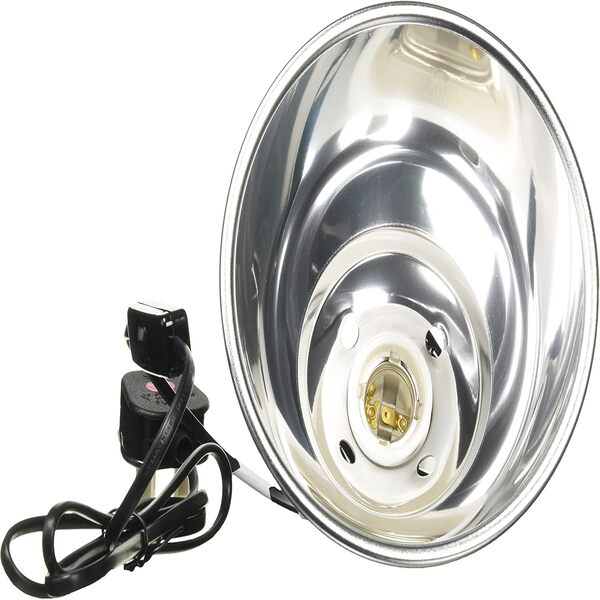 This lamp uses a high-polished aluminum reflector to direct maximum light and heat downward. It improves the efficiency of UV lighting, creating an ideal spot for reptiles to bask. The deep dome design keeps the bulb recessed and safe from contact.