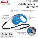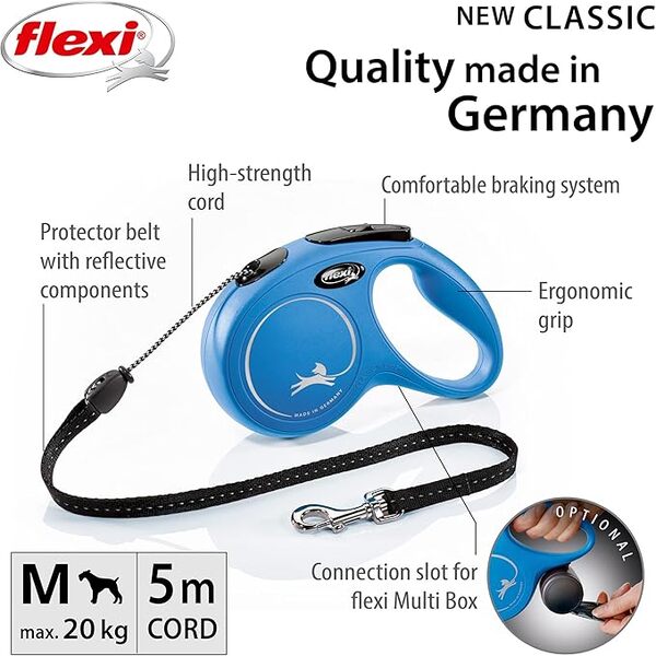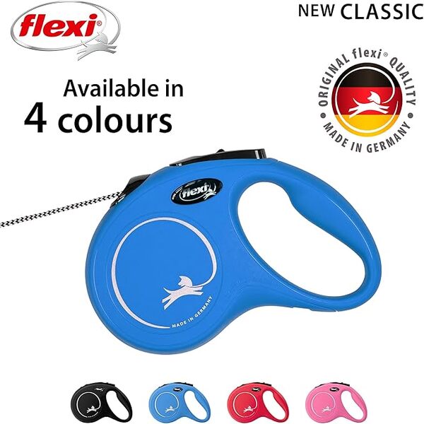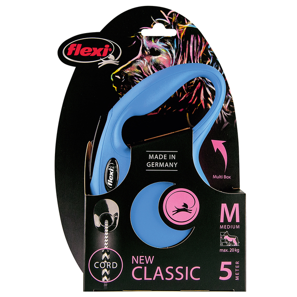 Enjoy smoother, safer walks with the Flexi New Classic Cord Blue – 5m Retractable Leash, designed for medium-sized dogs up to 20kg. This durable leash features a strong 5-meter cord, giving your dog freedom to explore while keeping you in full control. The one-hand braking and locking system ensures quick response and smooth handling, making it perfect for daily walks, training, or outdoor adventures. Its ergonomic grip and lightweight, compact design provide maximum comfort for pet owners during every stroll.