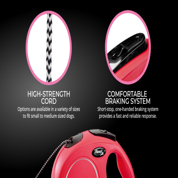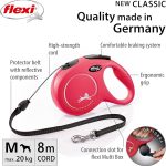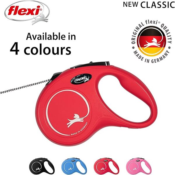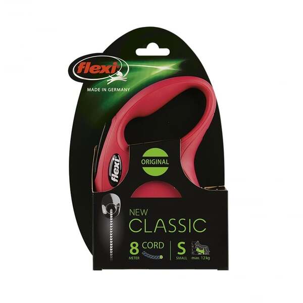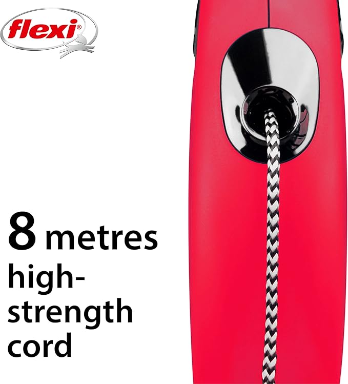 Upgrade your dog walks with the Flexi New Classic Cord 8m Red Leash, ideal for medium-sized dogs up to 20kg. This premium retractable leash gives your pet up to 8 meters of safe roaming while keeping you in control. The smooth one-hand braking system ensures quick and easy handling. Its compact, lightweight build and ergonomic grip offer comfort and effortless control on every walk.