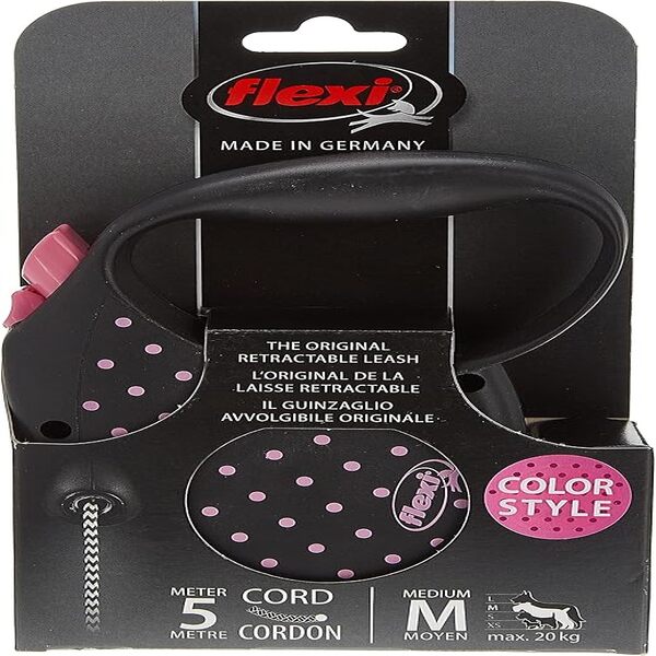 Perfect for daily walks, this leash is compact, lightweight, and built to last. The vibrant pink color adds a touch of style, and the intuitive braking system lets you maintain control even in busy areas. Whether you’re strolling through the park or the city, the Flexi Standard Cord 5m Pink Leash is a reliable and stylish choice for pet owners who value safety and freedom.