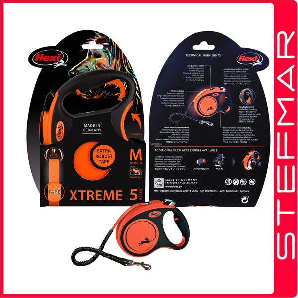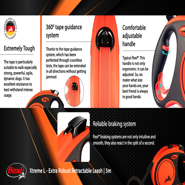 Styled in a bold Black and Orange finish, the Flexi Xtreme is perfect for energetic and strong dogs. Whether you’re navigating busy streets or exploring rough trails, this leash handles sudden pulls with ease. It’s tough, stylish, and dependable—ideal for daily use with active dogs of all sizes.
