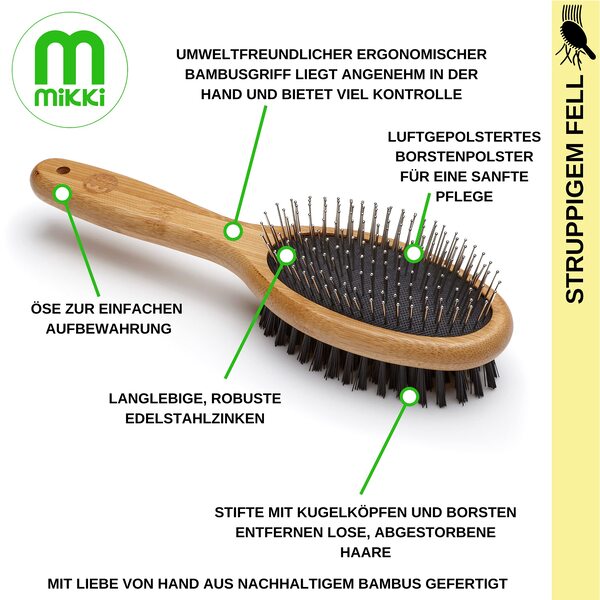 Mikki Bamboo Combi Brush Reduces Shedding for Dogs & Cats | Dual-Sided Grooming Tool