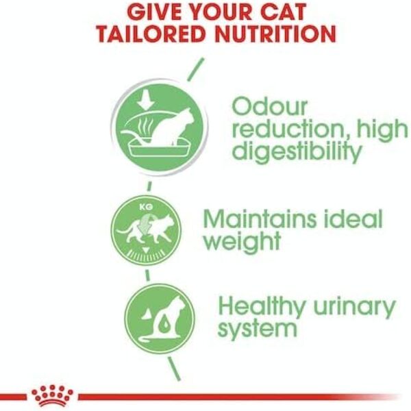 Royal Canin formulates this recipe with easily digestible proteins (L.I.P. – Low Indigestible Proteins) to help improve digestion and reduce the formation of smelly stool. Prebiotics support a healthy gut microbiome, while an optimal balance of fiber encourages smooth intestinal transit. This formula provides complete and balanced nutrition to help your cat thrive.