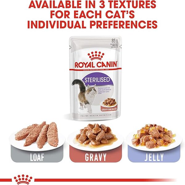 • 85g x 1 pouch gravy wet pouches for sterilised cats