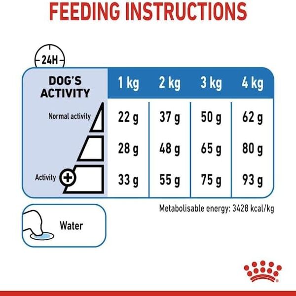 Royal Canin adapts the kibble size and texture specifically for extra small jaws, encouraging proper chewing and supporting dental health. This helps maintain oral hygiene and reduces the risk of dental issues common in small breeds.