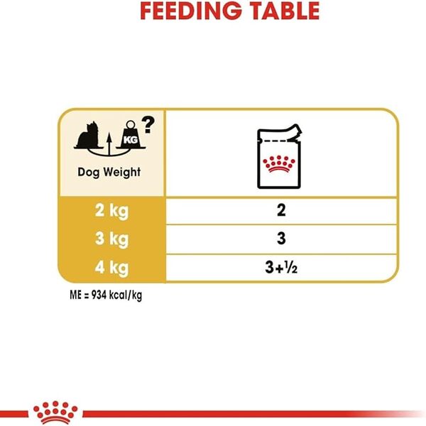 Serve Royal Canin Yorkshire Adult wet food as a complete meal or mix it with Royal Canin Yorkshire Terrier dry kibble for a varied and satisfying diet. With a flavor your Yorkie will crave and the nutrition they need, every pouch makes mealtime something to look forward to.