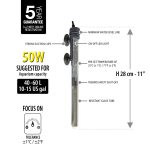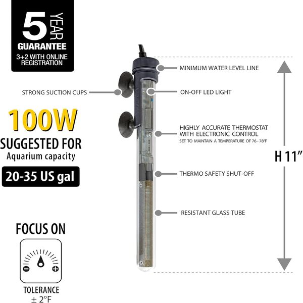 Crafted with high-quality shatterproof glass and advanced electronic components, the heater ensures safety, durability, and energy efficiency. Its fully submersible design allows for flexible placement in your aquarium, while the secure suction cup mounting system keeps it firmly in place. The integrated thermal protection system prevents overheating, offering peace of mind for both novice and experienced aquarists.