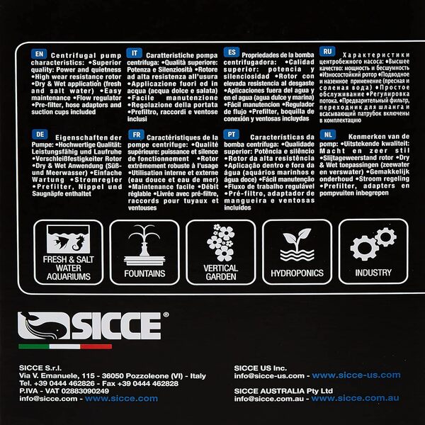 The Sicce Syncra Pump 1.5 – 1350l/h offers high performance and whisper-quiet operation for a wide range of aquatic applications. Engineered in Italy with precision and quality, this pump delivers a strong and steady flow of up to 1350 liters per hour while consuming minimal energy. Whether you’re maintaining a freshwater or saltwater system, this pump ensures optimal water circulation, essential for the health of your aquarium or pond.